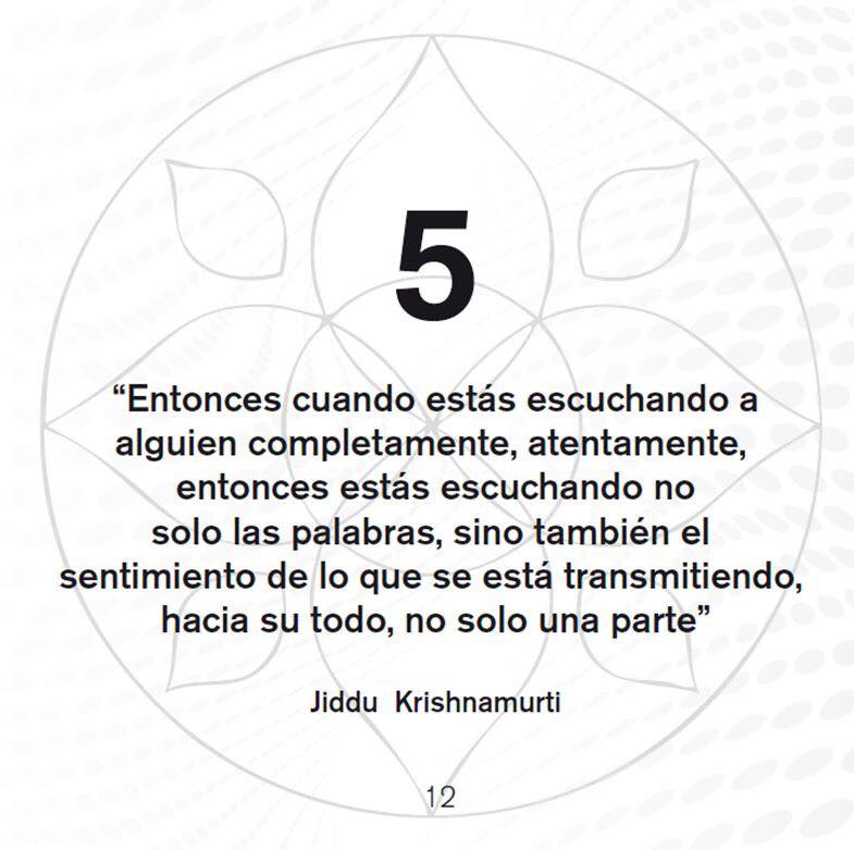 PROMESA COMPROMISO: Aquí y ahora por los próximos 30 días honraré la unidad y lo sagrado de la Vida en mí y en todos los que encuentre. Día 5 – Escuchar Hoy honraré lo sagrado de la vida en mí y en otros escuchando – empezando conmigo mismo. Continuaré desa.......